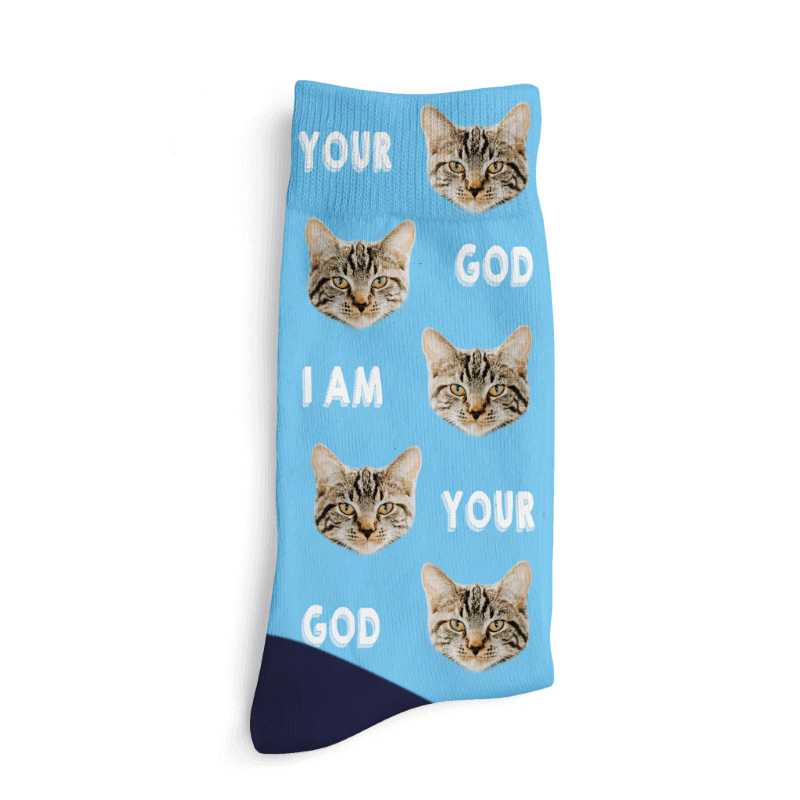 Nélkülözhetetlen zokni minden olyan macskatulajdonos számára, akinek a macskája úgy viselkedik, mint egy isten. Tölts fel egy fotót a macskádról, és készülj fel az új kedvenc zoknidra! Ja, és azt mondtuk már, hogy ez tökéletes ajándék?